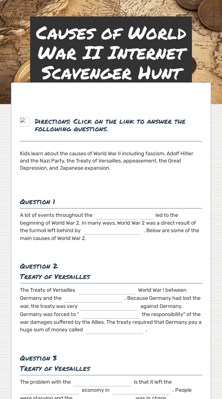 Causes Of World War Ii Worksheet - World War I Ww1 Facts Worksheets History Information For Kids /. Recycling scrap and other materials was a very big deal; When germany attacked poland on sept. Knowing about these events helps you get a better understanding of why the world is as it is today. What else caused the war to spread. The battleship/battlecruiser scharnhorst was a german capital ship that entered service in 1939 and saw service in world war ii and was sunk in 1943.
